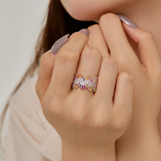 [baslovejewels]Ornate Colorful Radiant Cut Daily Ring